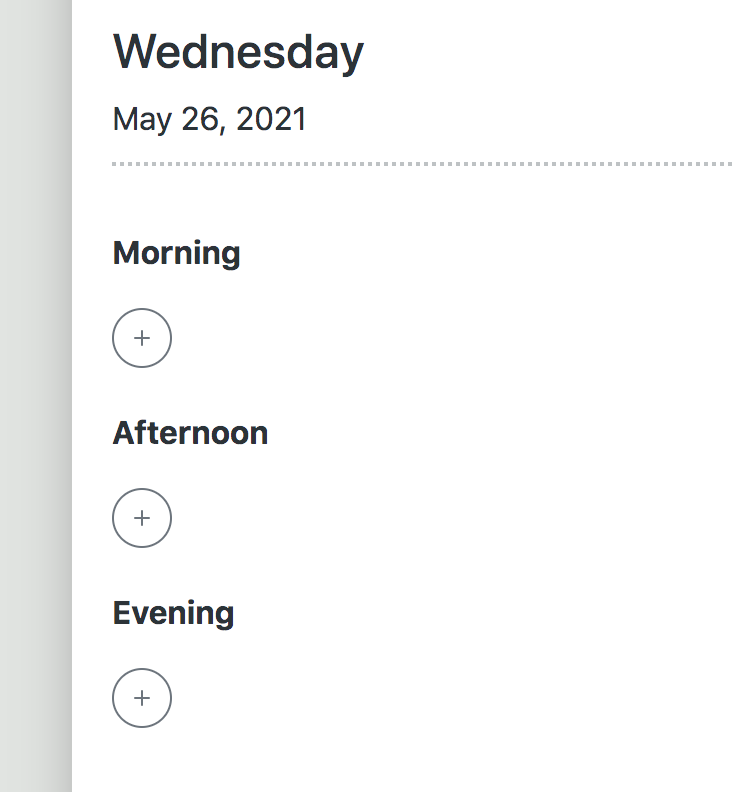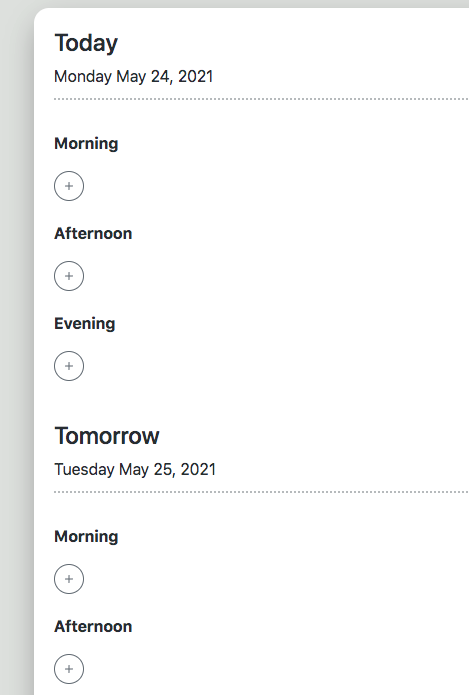 In the Daily App, we provide 3 natural blocks of time: Morning, Afternoon and Evening. This gives you flexibility and a sense of control. If you start a task at 9:15 instead of 9am exactly, it's ok. Get started and get going.