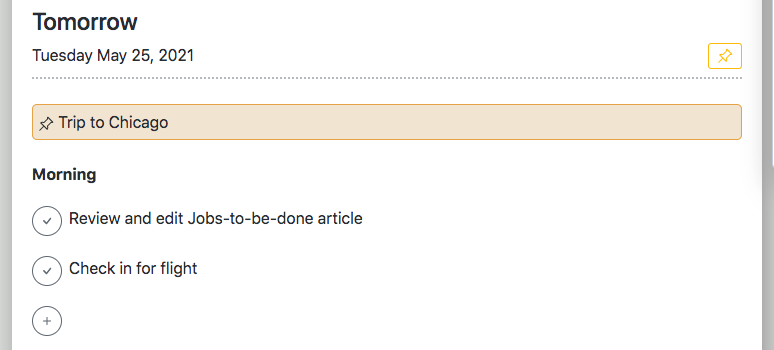Below Today's tasks, you can view Tomorrow's tasks as well. This encourages you to end your day planning for the next. And so when tomorrow becomes today, you are all teed up and ready to go.